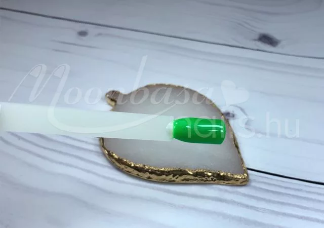 A bonder megkötése után vigyük fel az első réteg 3step gel polishot, ügyelve arra, hogy ne legyen túl vastag. Ha túl sok anyagot használunk, előfordulhat hólyagosodás vagy csúszás a kötés során. A lakkozást határozott mozdulatokkal végezzük, ügyelve arra, hogy ne maradjon levegő a rétegek alatt. A világosabb árnyalatok – mint a fehér is – az első rétegben még áttetszőek lehetnek, a második réteg viszont tökéletes fedést biztosít.