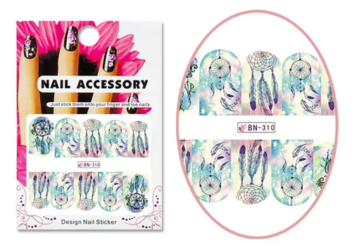 Színes álomfogók V2 mintájú Akril hatású matrica (BN-310) használható műkörömre és saját körömre egyaránt.