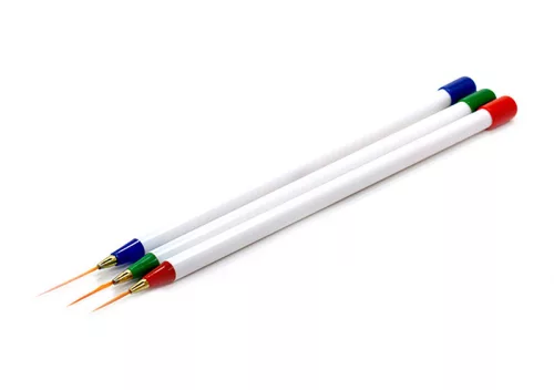 A műkörmös leggyakrabban használt  kelléke a műköröm ecset. A Díszítő ecset szett 3db extra minőségű műköröm kellék, mely a gyönyörű dizájnjával a műkörmös asztalod dísze lesz. Tökéletesen eltalált súlyeloszlás, gondosan megtervezett forma jellemzi mindegyik műköröm ecsetünket, mely pontosan a kezedhez illeszkedik, és játszi könnyedséggel készítheted a legpontosabb, legszebb műköröm formákat, műköröm díszítéseket és vonalakat, mosoly vonalakat. Természetesen az ecset választásánál azt kell figyelembe venned, hogy pontosan mit és hogyan szeretnél a műkörömre felvinni.