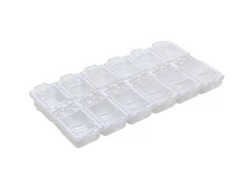 Minden rekeszhez egy-egy átlátszó és jól záródó fedél is tartozik, amelyet megfelelően lezárva (halk kattanó hang jelzi a zárt állapotot), akár táskában szállítva is biztos lehetsz abban, hogy nem fognak a benne lévő apróbb elemek kiborulni.