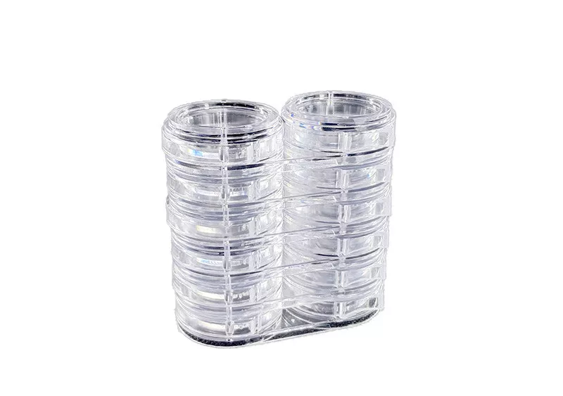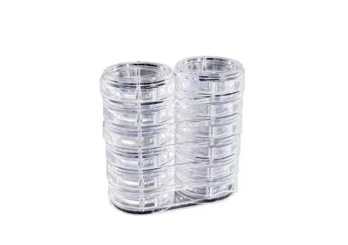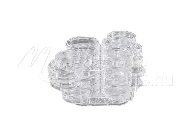 A párossával könnyedén szétszedhető majd újra összeállítható díszítő tárolók praktikusak és könnyen szortírozhatod bennük körömdíszítő kellékeid is akár.