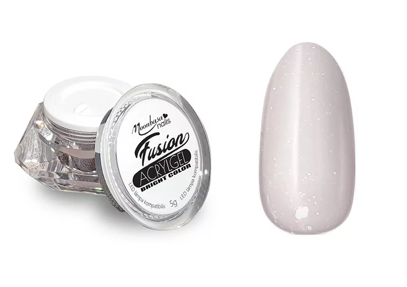 Moonbasanails Fusion Acrylgel Bright colour 5g #053 Transparent pink with glitter Hema-free is a professional PolyGel-type nail building material that combines the flexibility of gel nails with the stability of porcelain technique in one easy-to-use product. It is an ideal choice for nail bed extension, creating a strong base, and building natural-looking nails.