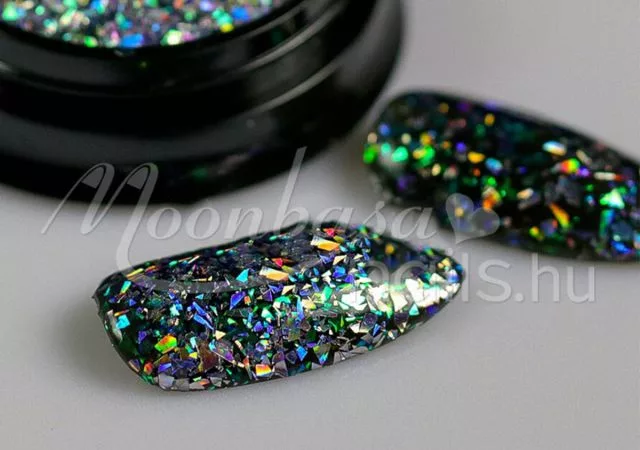 Csillogó és elbűvölő! Mintha csillagok táncolnának a körmeiden. Használata egyszerű, teheted műkörömre, vagy akár a saját körmödre is. A szabálytalan kis glittereket a géllakkod, körömlakkod, építőzseléd tetejére is rászórhatod. A tartós eredmény érdekében mindenképp használj fedésképen egy réteg fényzselét!