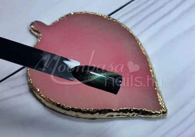 5. Még ne köttessük meg a felvitt réteget semmiképp se az UV/LED lámpánk fénye alatt! Most jön a varázslat ugyanis. Tiger eye szupererős mágnes segítségével varázsoljuk körömdíszítésünkbe a kívánt fényjátékot. Mivel már többféle mágnes is elérhető kínálatunkban és ezek használata is rendkívül sokoldalú, így ezek egyenkénti használatára itt most nem térnénk ki. A legfontosabb, hogy tartsd a mágnesedet a körömdíszítéshez olyan közel, amilyen közel csak tudod. Elegendő csak 1-2 másodpercre felmágnesezni a géllakkot, mert a minta azonnal ki fog rajzolódni.