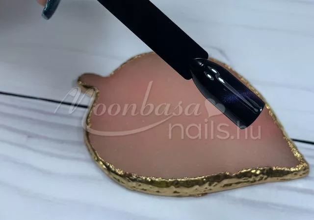 5. Még ne köttessük meg a felvitt réteget semmiképp se az UV/LED lámpánk fénye alatt! Most jön a varázslat ugyanis. Tiger eye szupererős mágnes segítségével varázsoljuk körömdíszítésünkbe a kívánt fényjátékot. Mivel már többféle mágnes is elérhető kínálatunkban és ezek használata is rendkívül sokoldalú, így ezek egyenkénti használatára itt most nem térnénk ki. A legfontosabb, hogy tartsd a mágnesedet a körömdíszítéshez olyan közel, amilyen közel csak tudod. Elegendő csak 1-2 másodpercre felmágnesezni a géllakkot, mert a minta azonnal ki fog rajzolódni.