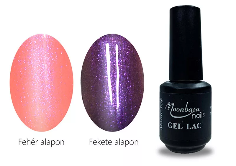 Megjegyzés: A Magic TOP géllakkok típusonként más és más csillámlást kölcsönöznek a körömdíszítésednek. Így mindig olyan színt válassz, ami az alapréteg színével összhangban lesz.
