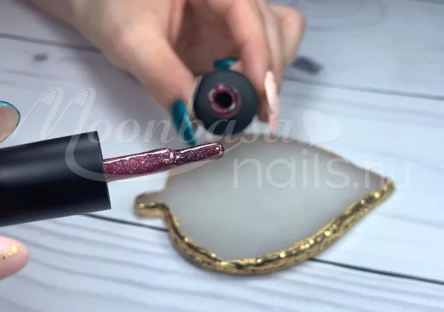 4. Már az első réteg felvitelénél láthatod, hogy milyen lesz az új körömdíszítésed színárnyalata és milyen csillámlást kölcsönöz majd az alaprétegben felvitt géllakknak.