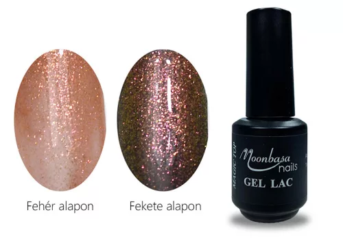 Megjegyzés: A Magic TOP géllakkok típusonként más és más csillámlást kölcsönöznek a körömdíszítésednek. Így mindig olyan színt válassz, ami az alapréteg színével összhangban lesz.
