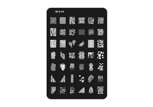 A Nail stamp plate 9 5x145cm MLS-04  használatával nem kell többé szalonba menned, hogy különleges és szabályos mintákat kapj. A lemezeken található aprólékosan megmunkált minták – átlagosan 12 különböző minta, kb. 1,5 x 2,5 cm méretben – tökéletesen illeszkednek bármilyen körömformához: rövid, hosszú, mandula, stiletto vagy szalonkocka.