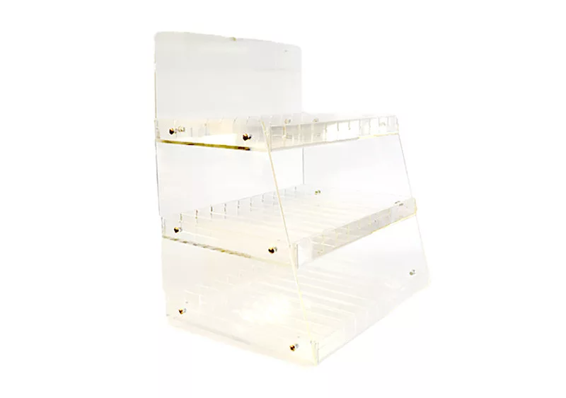 Az állványt lapra szerelve erős dobozban üresen szállítjuk. Az állvány anyaga erős plexi. könnyen és egyszerűen tisztán tartható.