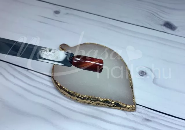 A mágnes segítségével a csillámló arany szemeket egy sávba tudod vonzani, amely ezt a különleges tigrisszem hatást fogja kelteni. A Tigrisszem lakkzselé két rétegben tökéletesen fed. Az első réteget UV/LED lámpa fénye alatt köttesd meg. A második rétegen alkalmazd a mágnest megkötés előtt.