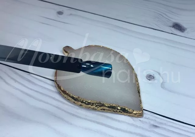 A mágnes segítségével a csillámló arany szemeket egy sávba tudod vonzani, amely ezt a különleges tigrisszem hatást fogja kelteni. A Tigrisszem lakkzselé két rétegben tökéletesen fed. Az első réteget UV/LED lámpa fénye alatt köttesd meg. A második rétegen alkalmazd a mágnest megkötés előtt.