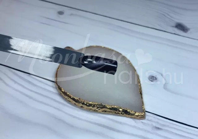 A mágnes segítségével a csillámló arany szemeket egy sávba tudod vonzani, amely ezt a különleges tigrisszem hatást fogja kelteni. A Tigrisszem lakkzselé két rétegben tökéletesen fed. Az első réteget UV/LED lámpa fénye alatt köttesd meg. A második rétegen alkalmazd a mágnest megkötés előtt.