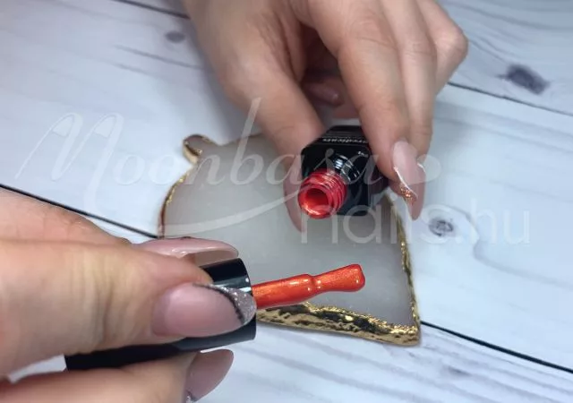 3. Jöhet az első réteg Tigrisszem gél lakk, köttesd meg UV/LED lámpa fénye alatt