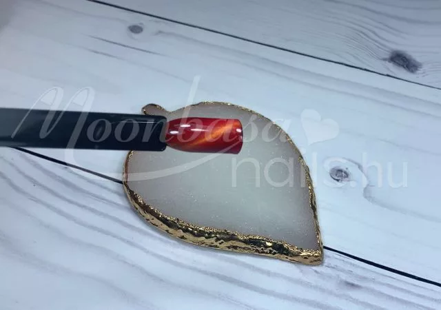 A mágnes segítségével a csillámló arany szemeket egy sávba tudod vonzani, amely ezt a különleges tigrisszem hatást fogja kelteni. A Tigrisszem lakkzselé két rétegben tökéletesen fed. Az első réteget UV/LED lámpa fénye alatt köttesd meg. A második rétegen alkalmazd a mágnest megkötés előtt.