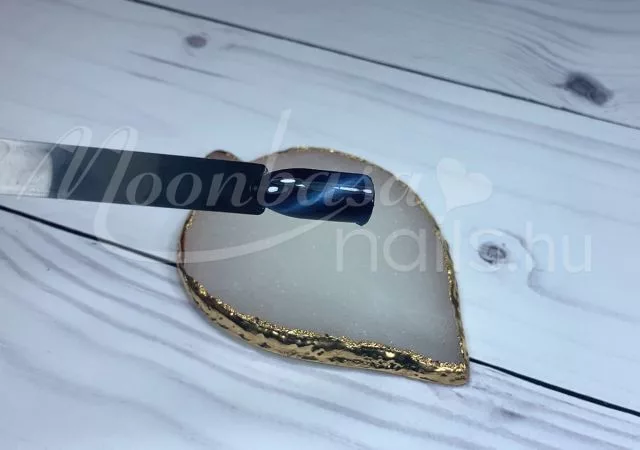 A mágnes segítségével a csillámló arany szemeket egy sávba tudod vonzani, amely ezt a különleges tigrisszem hatást fogja kelteni. A Tigrisszem lakkzselé két rétegben tökéletesen fed. Az első réteget UV/LED lámpa fénye alatt köttesd meg. A második rétegen alkalmazd a mágnest megkötés előtt.