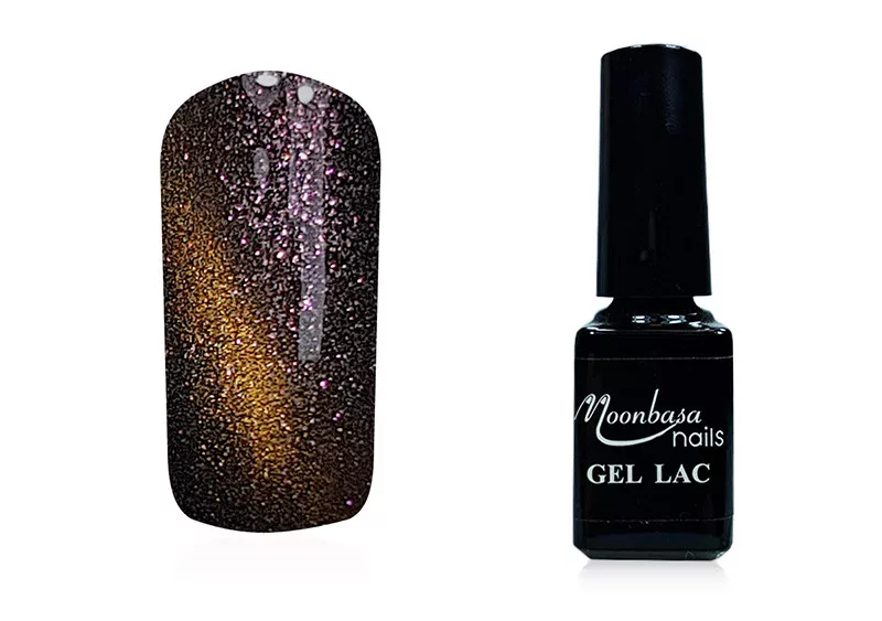 A mágnes segítségével a csillámló arany szemeket egy sávba tudod vonzani, amely ezt a különleges tigrisszem hatást fogja kelteni. A Tigrisszem lakkzselé két rétegben tökéletesen fed. Az első réteget UV/LED lámpa fénye alatt köttesd meg. A második rétegen alkalmazd a mágnest megkötés előtt.
