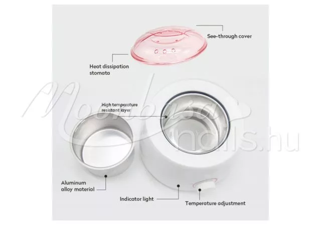 Ebben a melegítőben felmelegítheted a gyantát, paraffint. A gépben található egy 500ml-es tároló edény, ami a paraffin tárolására alkalmas. A gép 80W teljesítményű.
